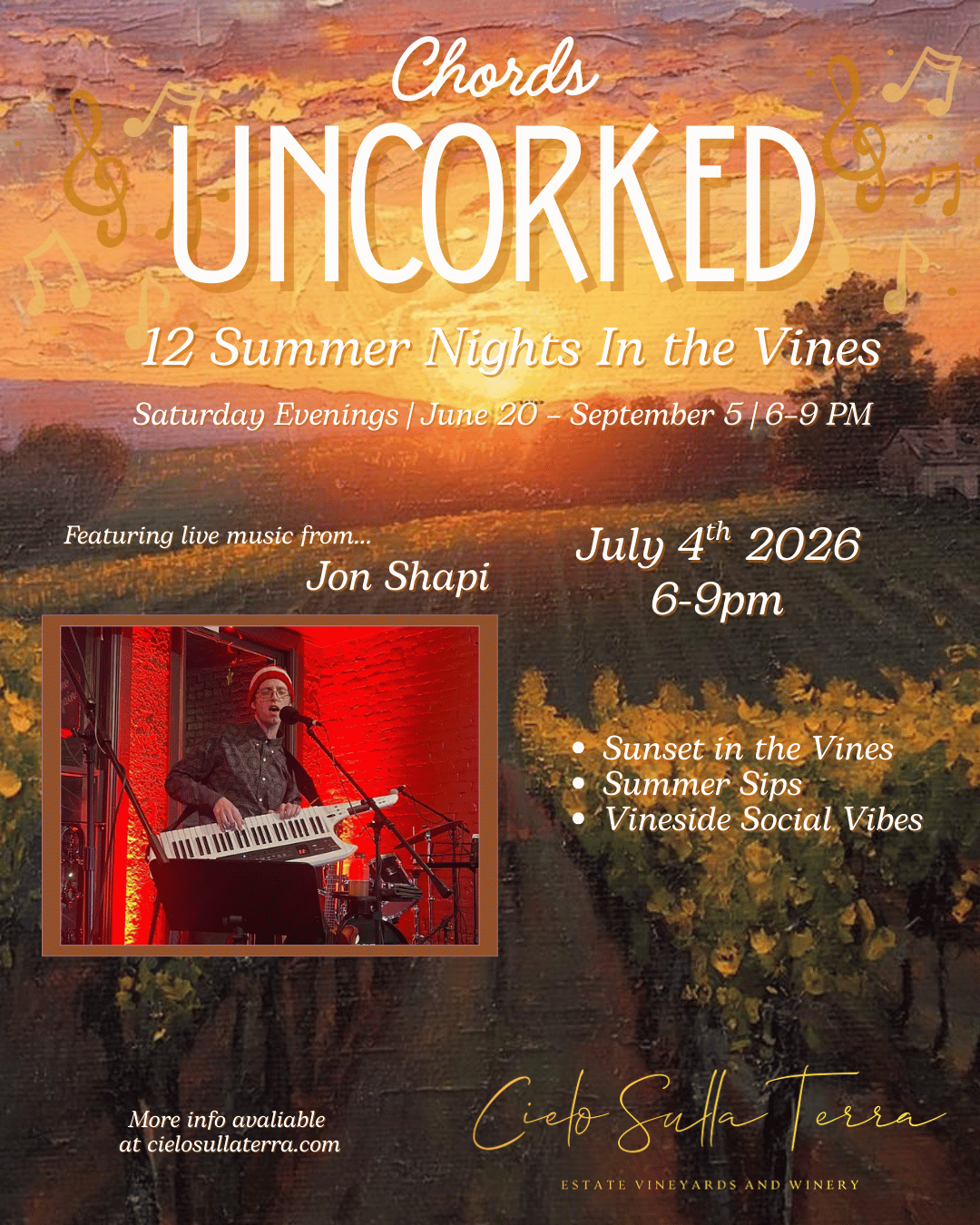 Admission is for a winery marketing and hospitality experience. Music is provided as part of the overall guest atmosphere. Tickets: https://www.squadup.com/events/chords-uncorked-2026?legacy=0
